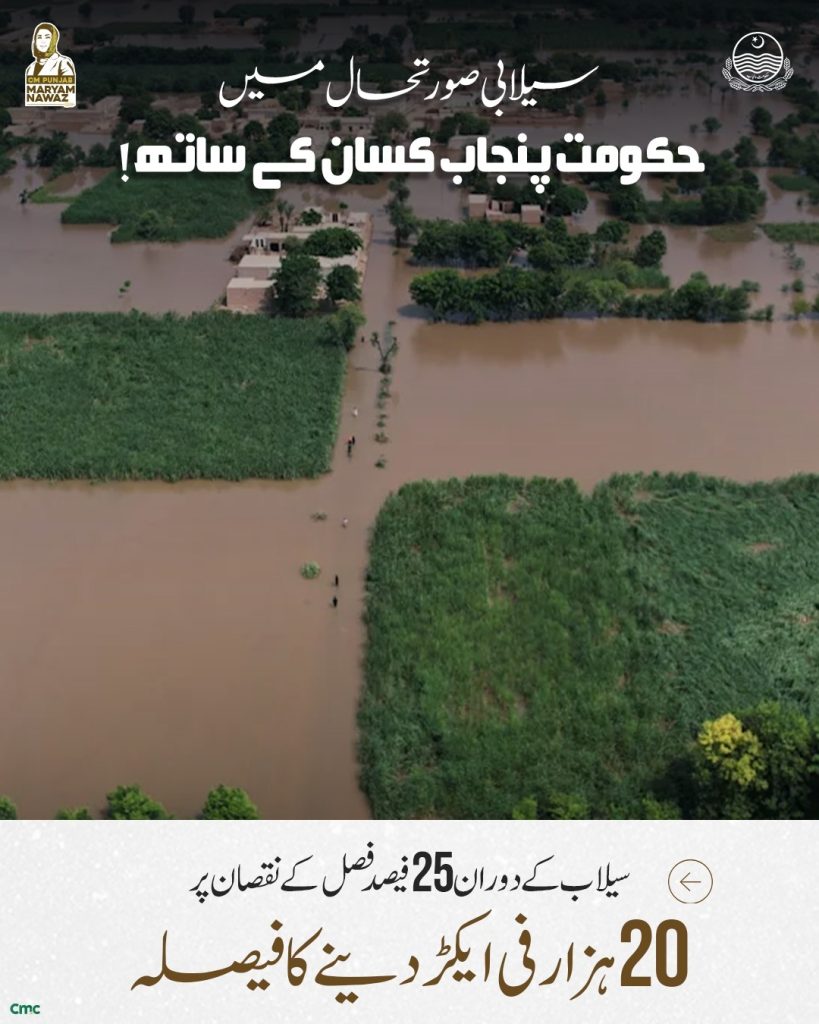 یہ فیصلہ وزیرِ اعلیٰ پنجاب مریم نواز کی ہدایت پر کیا گیا، تاکہ وہ کسان جو اپنی محنت کی کمائی سے محروم ہو گئے ہیں، دوبارہ کھڑے ہو سکیں اور اپنی اگلی فصل کاشت کر سکیں۔
